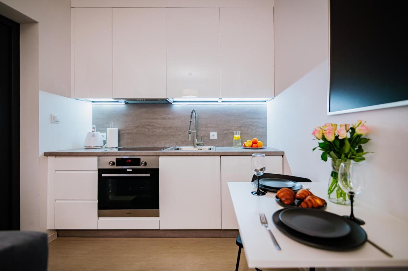 Apartament typu Deluxe. Featuring a private entrance, this apartment comprises a kitchenette, 1 bedroom and 1 bathroom with a shower and a hairdryer. The fully equipped kitchenette has a stovetop, a refrigerator, kitchenware and an oven. This apartment features a washing machine, a tea and coffee maker, a flat-screen TV and a terrace. The unit offers 1 bed. Apartament - 2 osobowy. Powierzchnia pokoju ok.: 22 mkw. ;