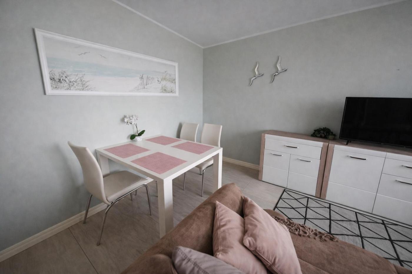 Apartament typu Standard. This apartment includes 1 living room, 1 separate bedroom and 1 bathroom with a walk-in shower and a hairdryer. Meals can be prepared in the well-fitted kitchen, which has a stovetop, a refrigerator, kitchenware and a tea and coffee maker. Boasting a terrace with sea views, this apartment also offers a washing machine and a flat-screen TV with cable channels. The unit has 2 beds. Apartament - 3 osobowy. Powierzchnia pokoju ok.: 39 mkw.
