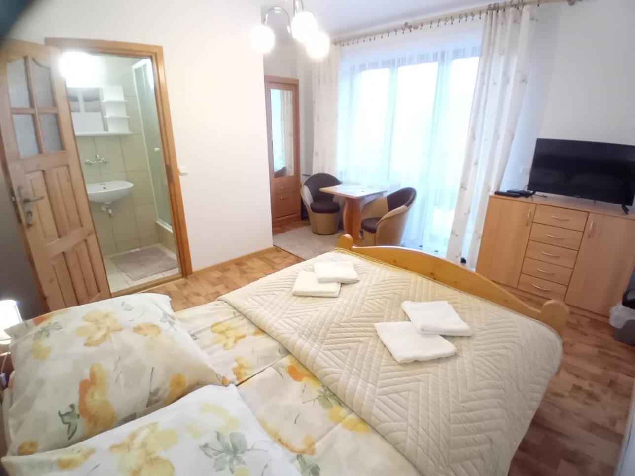 Pokój rodzinny. This family room has a private bathroom, a wardrobe, an electric kettle as well as a terrace. The unit has 2 beds. Rodzinny - 3 osobowy. Powierzchnia pokoju ok.: 25 mkw. ;