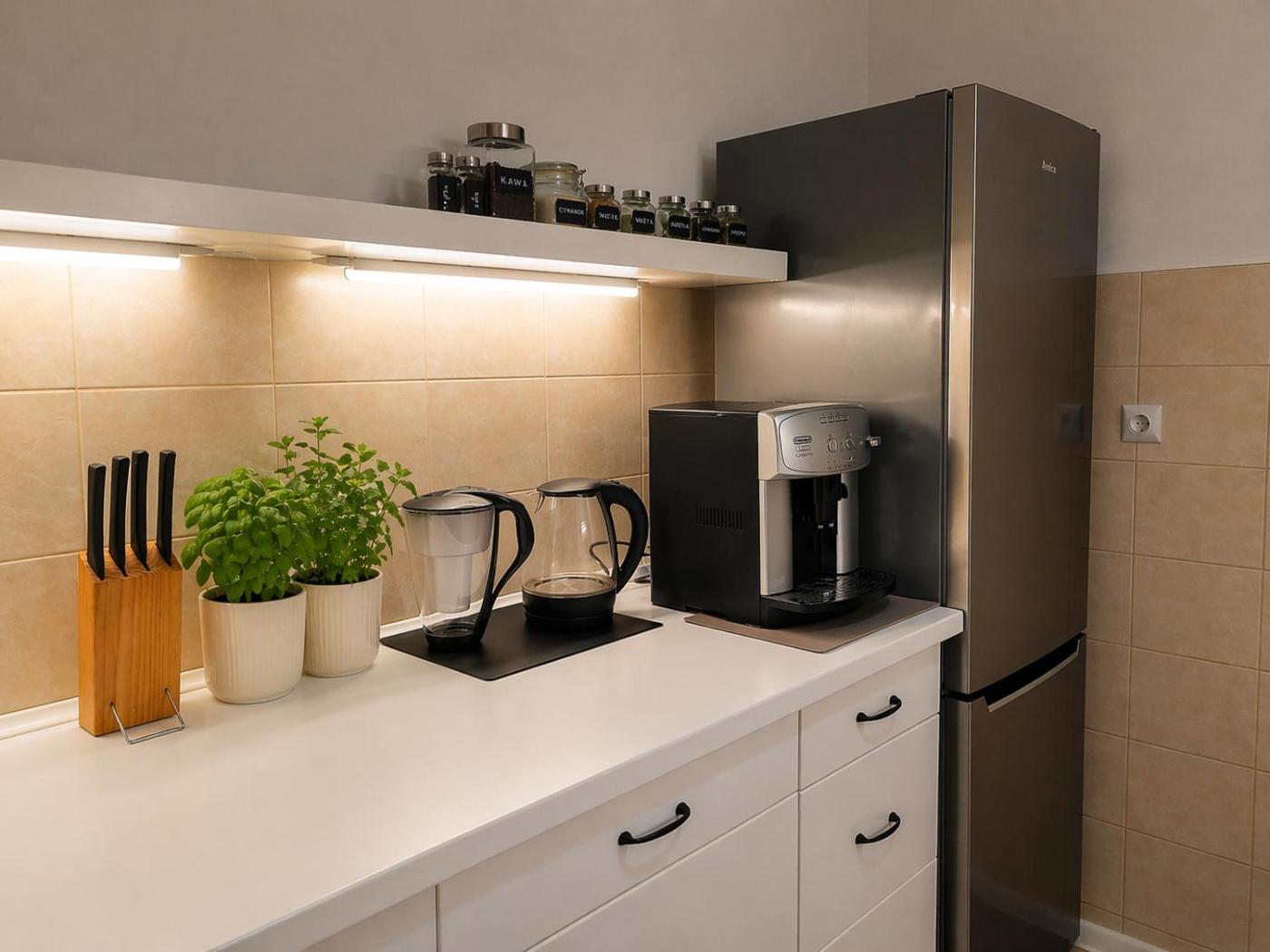 Apartament typu Deluxe. Featuring a private entrance, this apartment is comprised of 1 living room, 1 separate bedroom and 1 bathroom with a bath or a shower and a hairdryer. Meals can be prepared in the well-fitted kitchen, which is fitted with a stovetop, a refrigerator, a dishwasher and kitchenware. The apartment offers a washing machine, a coffee machine, a seating area, a flat-screen TV with streaming services, as well as city views. The unit offers 2 beds. Powierzchnia pokoju ok.: 33 mkw.
